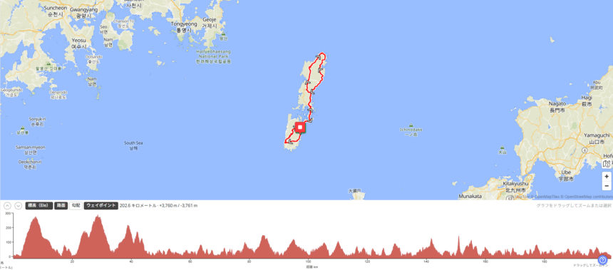 | スタート場所 | 長崎県対馬市厳原(イズハラ)フェリーターミナル(国内線) |